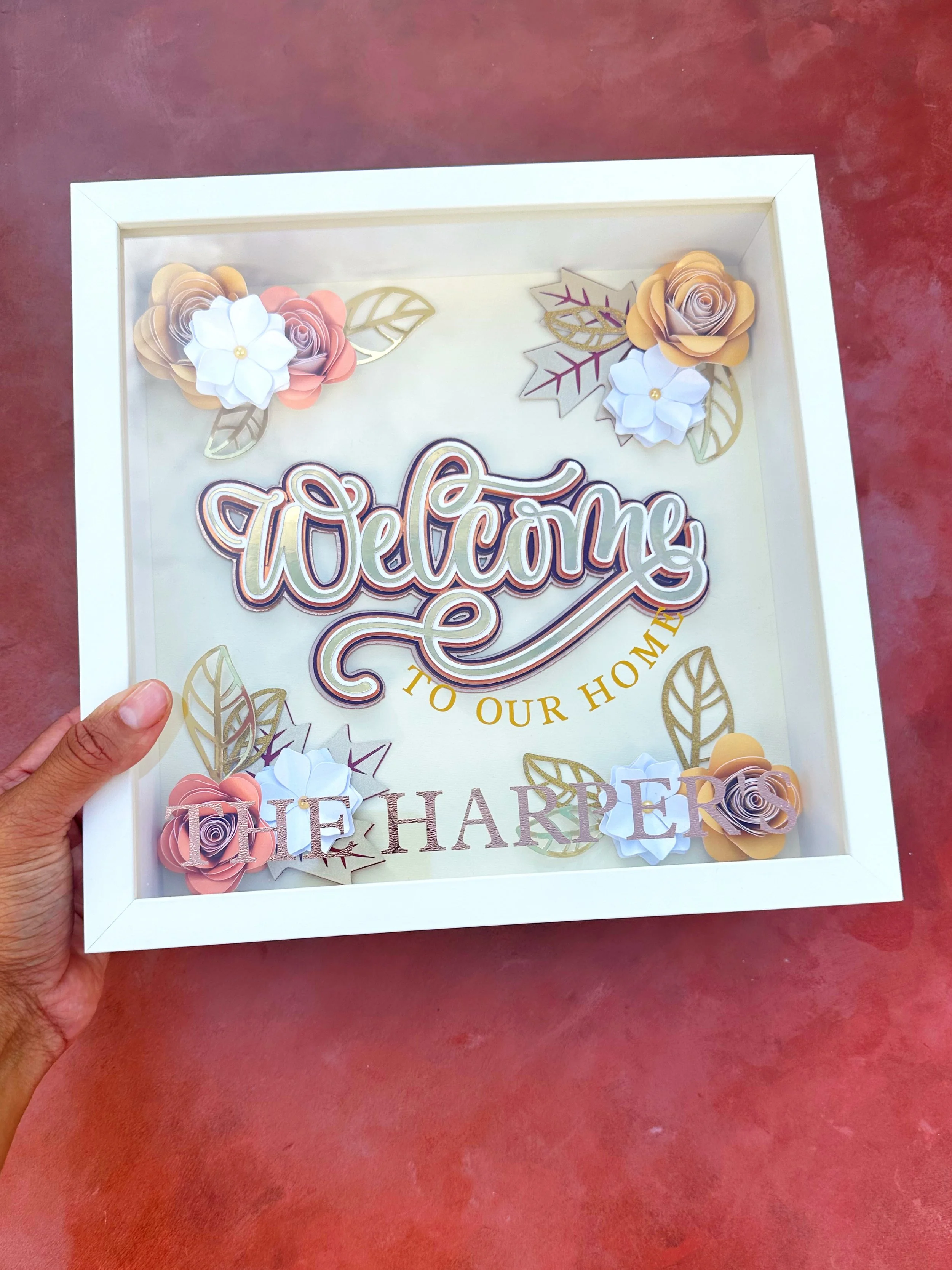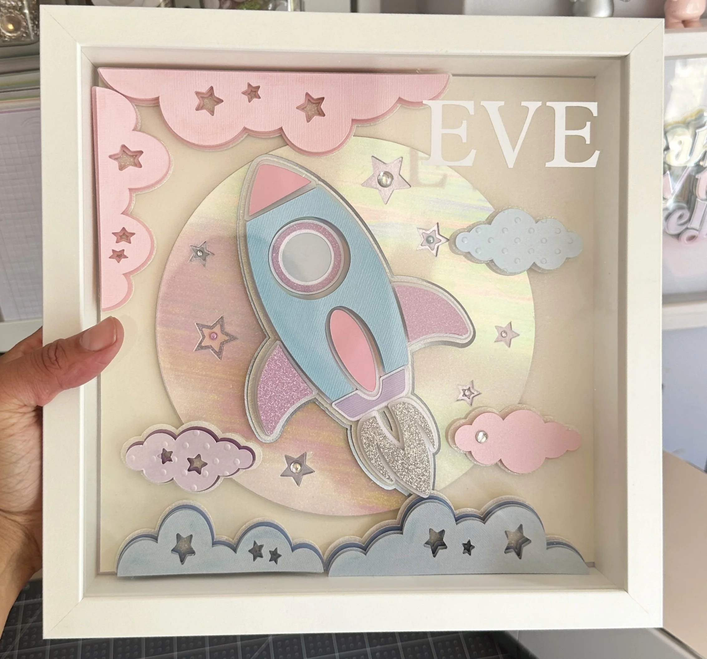 Shadow boxes are such a beautiful concept, a literal work of art. A beautiful gift & keepsake. A perfect way to display cake toppers too. I use the Ikea Sannahed 25cm Shadow Box Frames.